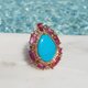 One of a kind ring! Ring Turquoise surrounded by pink tourmaline and white topaz Case Silver 925 in rose gold plated