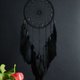 看看這個全黑的捕夢網吧!它是用正能量製成的,只會給主人帶來好的情緒。它由木珠、玻璃珠、用紗線包裹的木箍、黑鵝毛和大公雞製成。