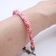 此手鍊使用日本傳統赤白縮緬布手工製作而成,布料輕柔、佩戴舒適,紅色麻葉風圖樣在白底上更顯亮眼。簡約卻帶有和風的優雅氣息。