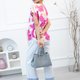 桃紅花朵口袋短袖上衣 / 白底 透氣舒適,夏秋皆宜