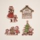 這是一組以聖誕節為主題的貼紙,包含4款不同的泰迪熊與女孩插圖,每款各2張,共8張。