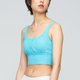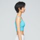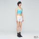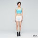 利用特殊紗線技術,能在機能布料呈現羅紋質感。前後大U領與短版衣長,再搭配胸口抽縐及下擺的寬帶收腰,巧妙營造的小腰視覺,能幫助展現良好體態,時髦又亮眼!