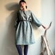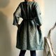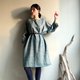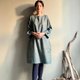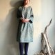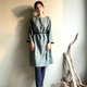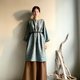 雲杉森林/綠色人字織紋毛料七分袖直筒短版洋裝/WOOL/只有一件
