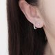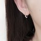 將耳針開口以錯開的方式輕扳開(開口約耳垂厚度的大小即可),穿入耳洞後,耳針末端與珍珠末端處扳回對齊,即完成。