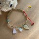 此款手環搭配 ㄧ顆藍水圓珠 及 三個翡翠小精品 配戴出優雅氣質
