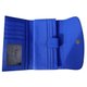 這款三折女用錢包採用真正的藍色麥圖鼠皮製作,顯現華麗色澤和高貴質感。優雅的設計無論搭配任何服裝都能展現品味。