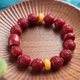 我們堅持傳統工藝打磨,拒絕上膠上色上蠟,大部分商家採用機器打磨,珠子做膠處理,這種珠子越戴越難看,破壞了硃砂的天然靈性,甚至對人體有害,我們不惜人工成本,用砂紙一遍一遍重復打磨,直到珠子呈現出天然的油光亮澤。
