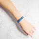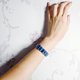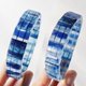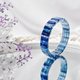 本件嚴選**頂級玉化藍晶石**,依**皇家藍、天空藍**平行交錯色彩,精工切磨片狀珠飾,呈現明快、時尚、前衛的**一線**紋理。