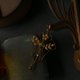 這件吊墜使用了英國作品中相對少見的雙色金作法,細膩生動的勿忘我花朵與葉片,因為添加了銀或鋅而呈現綠金色,與草綠的橄欖石相互輝映,下方溫潤的珍珠完美點綴整體色調。俐落而對稱的外型展現出不同於新藝術時期柔軟的風格。簡約而美好的花草設計,是一件經典標誌的愛德華時期珠寶。