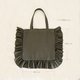 贅沢なボリュームのギャザーフリルをあしらった大人のトートバッグです。