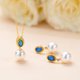 以18K黃金「封底」的澳寶呈現出另一種異域風情,與未「封底」款式的通透夢幻感截然不同,在K金包裹下的澳寶泛起海洋般的藍綠色,彷如注定的緣份與來自大海珍貴的Akoya珍珠作連接,海風吹起連綿波浪,為女性的婉柔美添上幾分異域色彩。