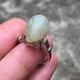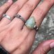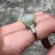 這個小指環的主石位置用了天然戈壁瑪瑙小原石-天然形成的綠色糖心配花眼水滴,完全沒有經過人工的設計和打磨,是大自然的饋贈,甜美可愛的一個。