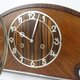 This is an original German antique table clock from 1935, made by the renowned clock company JUNGHANS. The clock is an 8-day mantel clock that strikes on the full and half hour and comes with its original key. Its classic design makes it a timeless addition for collectors or antique clock enthusiasts.