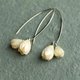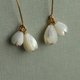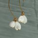 這款雪鈴花耳環以雕刻珍珠母貝製成,表面閃耀柔和珠光,在光線下展現自然光澤。可選擇銀色或金色耳鉤與金屬配件。耳環長度約 5 公分(約兩英吋),雪鈴花造型自然垂墜於下顎線附近,優雅動人。