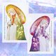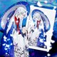 "Leuiatnan" wrapped in elegant blue robes, carrying a parasol beneath a rain of glowing butterflies.