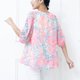 滿版粉花.綠色葉子七分袖上衣 透氣舒適,春夏皆宜