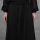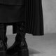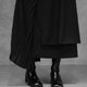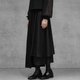 不對稱百褶拼接設計,營造豐富層次感,讓百褶元素擺脫單調,兼具帥氣與俐落的風格。雙層裙襬設計增添垂墜感與立體輪廓,使整體造型在行走間呈現自然流動感。簡約黑色基調,輕鬆搭配各式上衣,是百搭且有設計感的日常裙款。