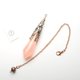 【特徵】採用了天然粉晶與獨特配件串聯而成的晶石靈擺。整體透露著一種神秘的美感。附帶一條金屬鏈子,方便使用。