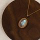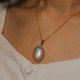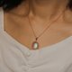 手工繞線橢圓形月光石項鍊,淺藍光月亮石,輕微側光。