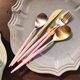 ※材質:18/10霧面不鏽鋼 + 24K金鍍金(5%金含量) + 磨砂處理的圓滑樹脂柄