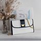 此款原為單純的手拿包,為了方便使用,另外加上了金屬鏈條,( 鏈條非原廠,兩側有小掛鉤,可拆式,銅材質高品質電鍍,不易褪色。)可當手拿包或側肩背包使用。收納空間非常足夠、可同時收納長夾及手機。背面還有一個 口袋夾層。雖然是古董包,但配色和款式加上金屬鍊條,搭配時裝也是顯得非常時髦。
