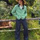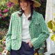 明媚的色彩感非常大膽,會讓人眼前一亮,是非常特別的花呢面料,成本很高。 搭配童趣又復古的古銅色花朵扣,整件衣服非常出彩,限量售賣,建議乾洗哦~