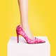 芭比標誌桃紅色調,高挑修腳的高跟鞋,