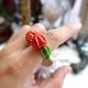 **MARY LOU紅色彩繪琺瑯仙人掌球黃銅材質鍍18K真金不掉色戒指 限量**
