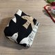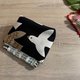 「北境小鳥」以黑與米白的強烈對比,勾勒出姿態可愛的小鳥剪影,像是在北境森林裡輕盈飛過,留下一段安靜卻溫暖的風景。布面上的鳥羽線條帶點樸拙的手繪感,搭配淺色系幾何內裡,展現北歐風特有的簡潔與自然氣息,非常耐看。
