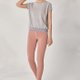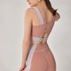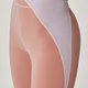 運動緊身褲將脇邊以圓弧線條的剪接線修飾身形,脇邊特殊併版設計,降低運動時剪接線的摩擦感,增加穿著舒適性。褲檔觸以立體版型概念導入,搭配三角裁片增加拉伸活動量。