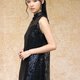這款兩件式蕾絲襯裙旗袍裙採用別緻的疊層設計。由透明的亮片蕾絲製成,輪廓寬鬆,內襯吊帶裙,穿著舒適。這款旗袍裙並非緊身款式,非常適合追求舒適穿著體驗的人。