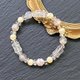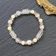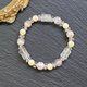 天然冰透白幽靈長約14mm寬約10mm、鑽石切面白水晶車輪珠7~8mm、條紋黃方解石約8~9mm、櫻花瑪瑙約10mm進口彈性線