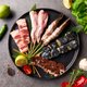 - 雞心、雞翅、豬五花、蒜香墨魚腸、培根鮮蝦捲各2串。