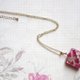 以濃郁的藍色為背景,點綴花朵和珍珠,搭配閃粉與白色線條,設計出優雅的吊墜。俐落的方形線條能讓頸部線條看起來更為修長。深沉的藏青色是秋冬季節的絕佳搭配單品。