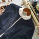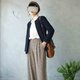 - →品牌:Leilian →深藍質感精梳毛呢 →領邊墜有低調珠飾