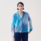 以特殊的花紋織法及深淺藍色,織造出如雲彩變化莫測的魔幻綺麗色彩。60%羊毛成分,讓這件外套輕薄保暖。