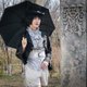 - 蒸汽朋克 哥特風復古 藍白立領修身條紋短袖拖尾襯衫