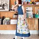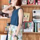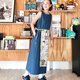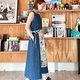 - 點點刺繡的牛仔布料,側邊圍上手繪風格的圖案布料,綁帶可依照喜好調整鬆緊,右邊側邊有口袋,版型穿起來修飾手臂線條,A-line的長洋裝讓整個人會很修長。