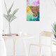 這幅畫我使用畫刀來創作,您可以在抽象的背景中有發現豐富的顏色彼此交融,還有一些用畫筆自然揮灑的顏料穿梭在其中。圖中的蝴蝶也是用畫刀完成,牠身上有很強烈的紋理、顏色極為鮮豔,充滿力量。這幅畫能增添您的臥室或孩子的房間,或其他您希望看起來更明亮、更多彩的空間愉快的感覺。