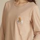 DINOTAENG | 電玩繡花上衣-大地棕 - 女 T 恤 - 棉.麻 咖啡色