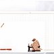 封筒の切手貼り付け部分には万年筆、封筒表には執筆中の作家の雀、折り返し部分は原稿用紙のマス目。
