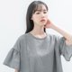 寬鬆版型、袖子抓皺波浪設計、前片雙道褶片設計、三角立體裁片、半弧造型口袋。