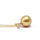 パールとダイヤモンドの輝きに加え、イエローゴールドの光沢がアクセントとなり、胸元でいきいきとした表情を見せてくれます。