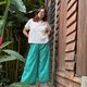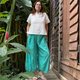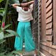Beautiful soft elegant cotton fabric. Made into long loose volumed leg pants. Side elastic waist with front zipper and button closure. 2 side roomy pockets.