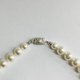 オールノットネックレスの特徴として、万が一、糸が切れた場合でも最小限で抑えられる点や、玉同士が密着していないので擦れあいにくく傷も付きにくい点、首回りにフィットしやすくなっている点等がございます。この仕様は特に海外で人気があり、比較的高品質アクセサリー類によくみられる仕様です。弊社の自社工場にて塗装したパールになります。品質の状態も維持されており、剥がれや大きな目立った傷などもございません。稀にピンホールや小さい凹み等が見られる場合がございますが、自社にて検品の上、品質に問題は無く許容範囲とさせて頂いております。