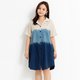 三色渐变靛蓝短袖翻领连衣裙 椰壳扣设计