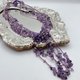 紫水晶帶來了高貴與神秘的氣息,而串珠和流蘇的搭配,更是增添了一份靈動與柔美。紫水晶還被認為具有平衡心靈、提升直覺的特性,給人帶來內在的平靜與安寧。這樣一款兼具美感與意義的項鍊,無疑是時尚與心靈的完美結合。