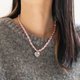 以經典鍊條點綴,由兩條粉紅與白色緞帶串連而成的項鍊。無論是為派對造型增添亮點,或在日常穿搭中展現隨性魅力,皆十分出色。