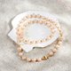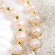 這款項鍊以天然粉色淡水珍珠搭配金色珠子與燈籠扣,散發柔美浪漫光澤。粉珍珠象徵溫柔與幸福,金色配件增添華麗質感,展現簡約中的高級時尚。