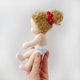 使用這種縫紉圖案,您可以製作一個 18 厘米 的華爾道夫娃娃。 這個華爾道夫娃娃有長而柔軟的頭髮、臀部、肚臍、耳朵和眉毛。 娃娃完全由天然材料製成:棉質平紋針織物、馬海毛珠圈紗和天然羊毛。